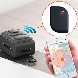 Approximately the size of a deck of cards, the locater connects to the inside of your suitcase and pinpoints the location of lost or misplaced luggage, sending a signal to inform travelers of what city or airport has their luggage. The locater also sends updates to your smartphone when your luggage is within 80 feet of your mobile device.